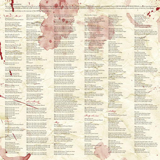 Messrs. Storm and Tender present their favorite tunes from the Murder Ballads Of 1816 “The Year Without A Summer” collection. Hear 12 original murder ballads on 2 sides of cold, black vinyl. The inner sleeve contains a full transcript of song lyrics. Essential listening and reading for the brave of heart and depraved of mind.