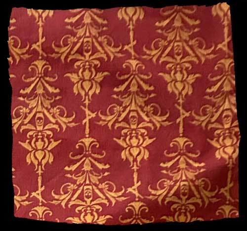 Trav’lers of the cloth, behold! Before you is an unfurlin’ of Marks, coffins, pistols, skulls, whiskey bottles, & ravens. 100% cotton. Crimson ‘n gold. All dream’d up by Messrs. Storm and Tender!