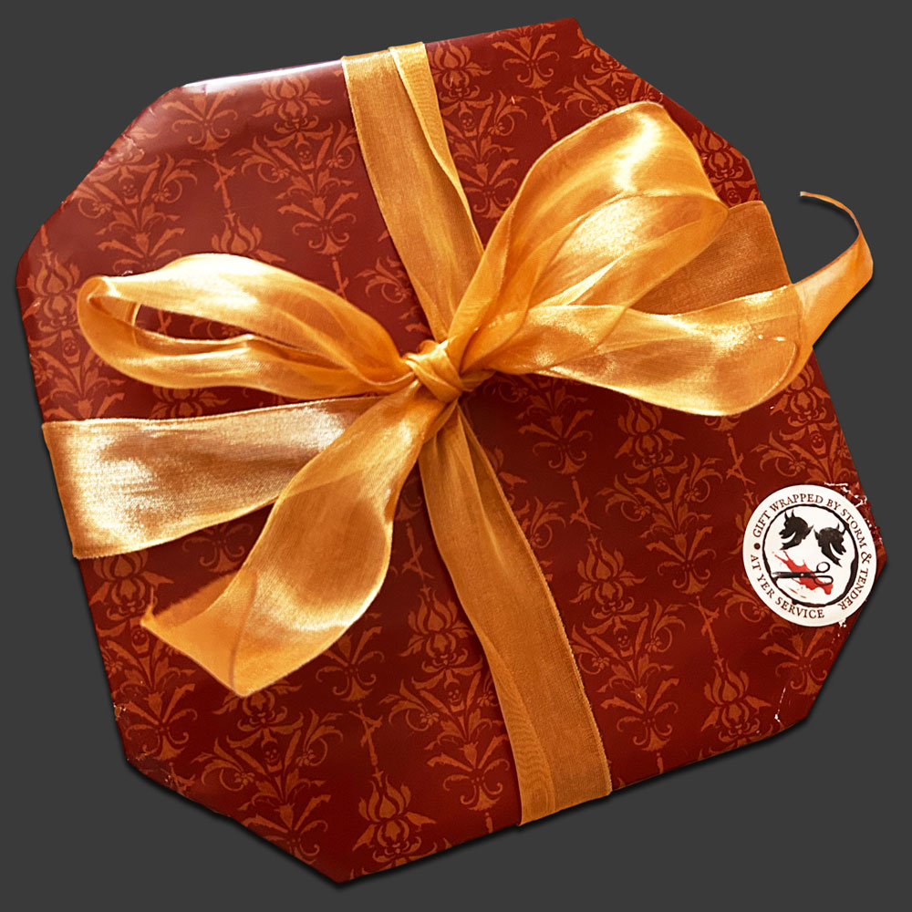 If’n you’re able to resist Pretty Lavinia’s servin’ charms, count yourself rarefied and hang this rust-brushed art, kissed by the lady herself, over a door, cupboard, or bartop. It’s high time you welcomed guests of your own with a legendary smirk and a deadly pour!