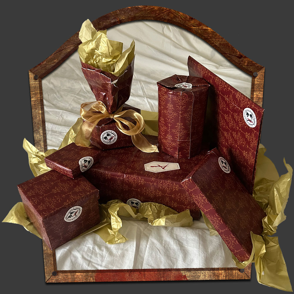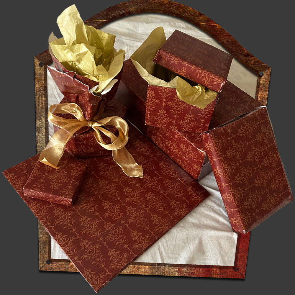 But … if you ain’t one for careful cuttin’ ‘n foldin’, not to fret! Gift Wrappin’ Services by Storm and Tender are available on select goods.
