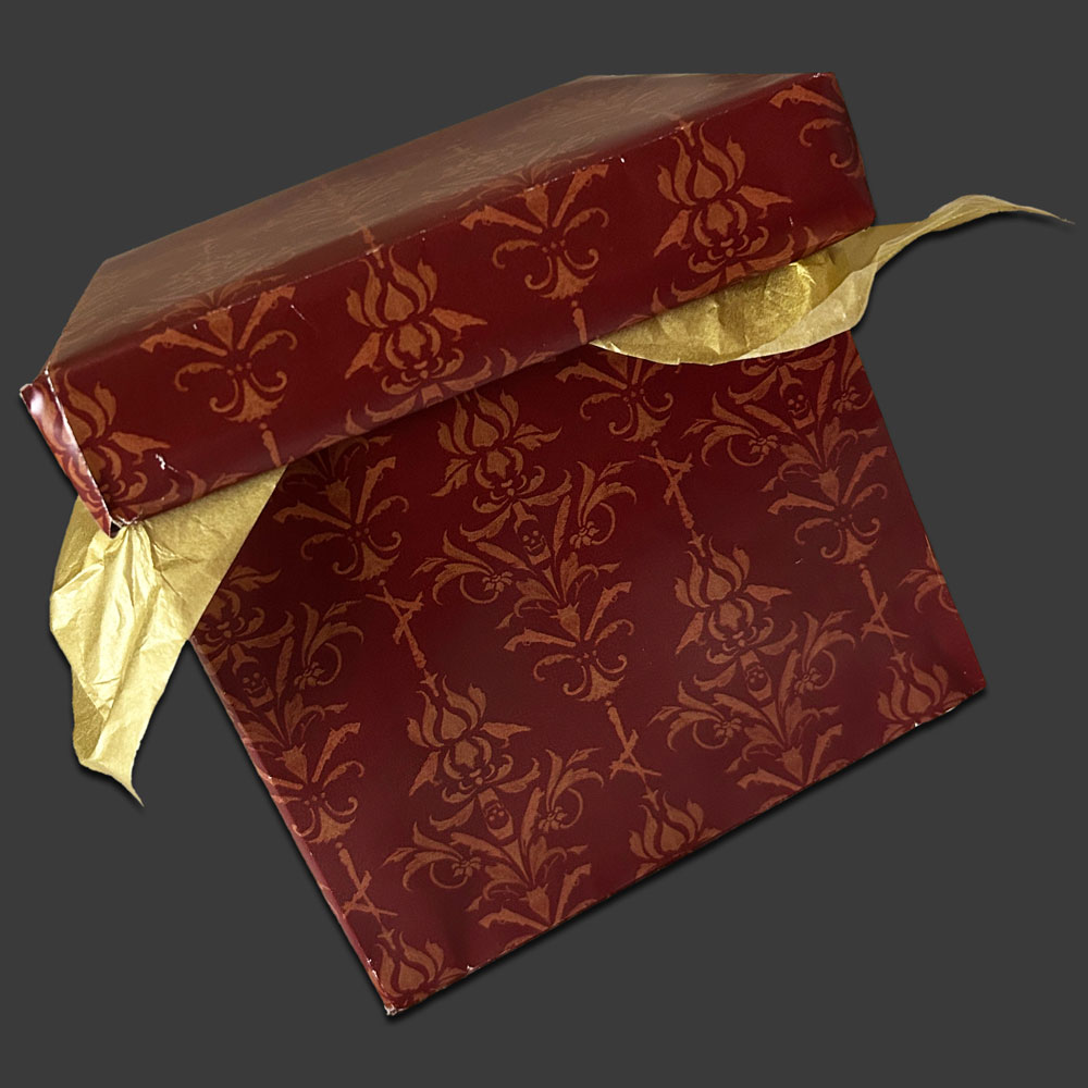 Everyone fancies rippin’ into a thoughtfully wrapped present. Especially if the tearaway paper is teemin’ with tiny skulls, coffins, pistols, whiskey bottles, & The Mark of Cain.